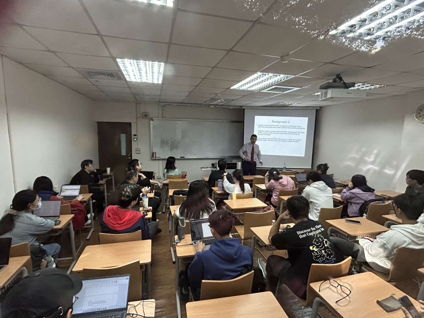 Bodnaruk 教授為金融領域的重要學者,專精於銀行行為、風險管理與金融市場實證研究。本次以 「Banks and the Fintech Narrative」 為題進行專題演講,結合理論與研究實證,引導學生思考銀行與金融科技的互動關係,現場交流熱烈,學生反應踴躍。